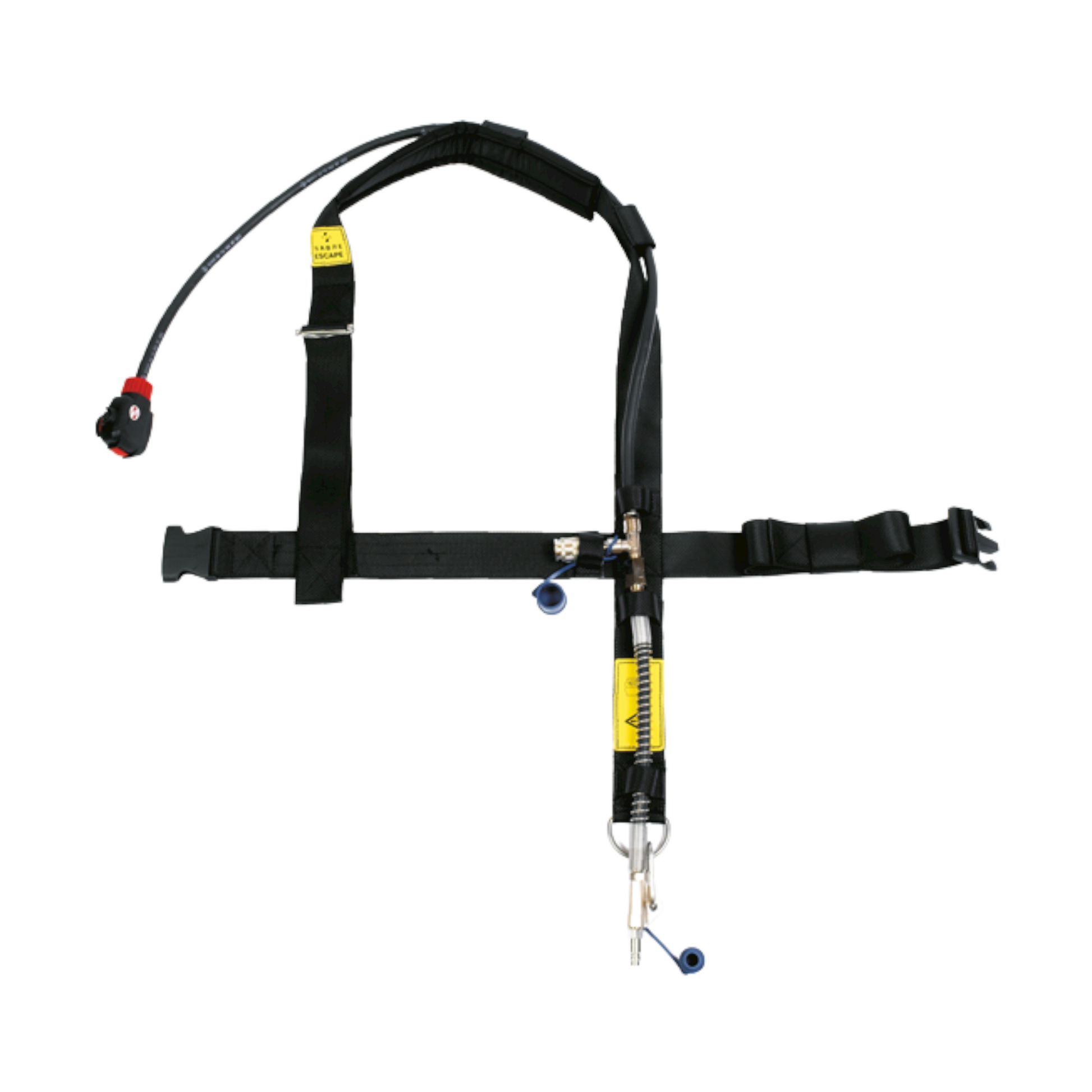 Système de conduite d'air Flite-(COV) composé d'une bandoulière et d'une ceinture réglables, complet avec régulateur et valve d'activation automatique et raccord CEN pour la connexion au tuyau de la source d'air. Livré sans masque.